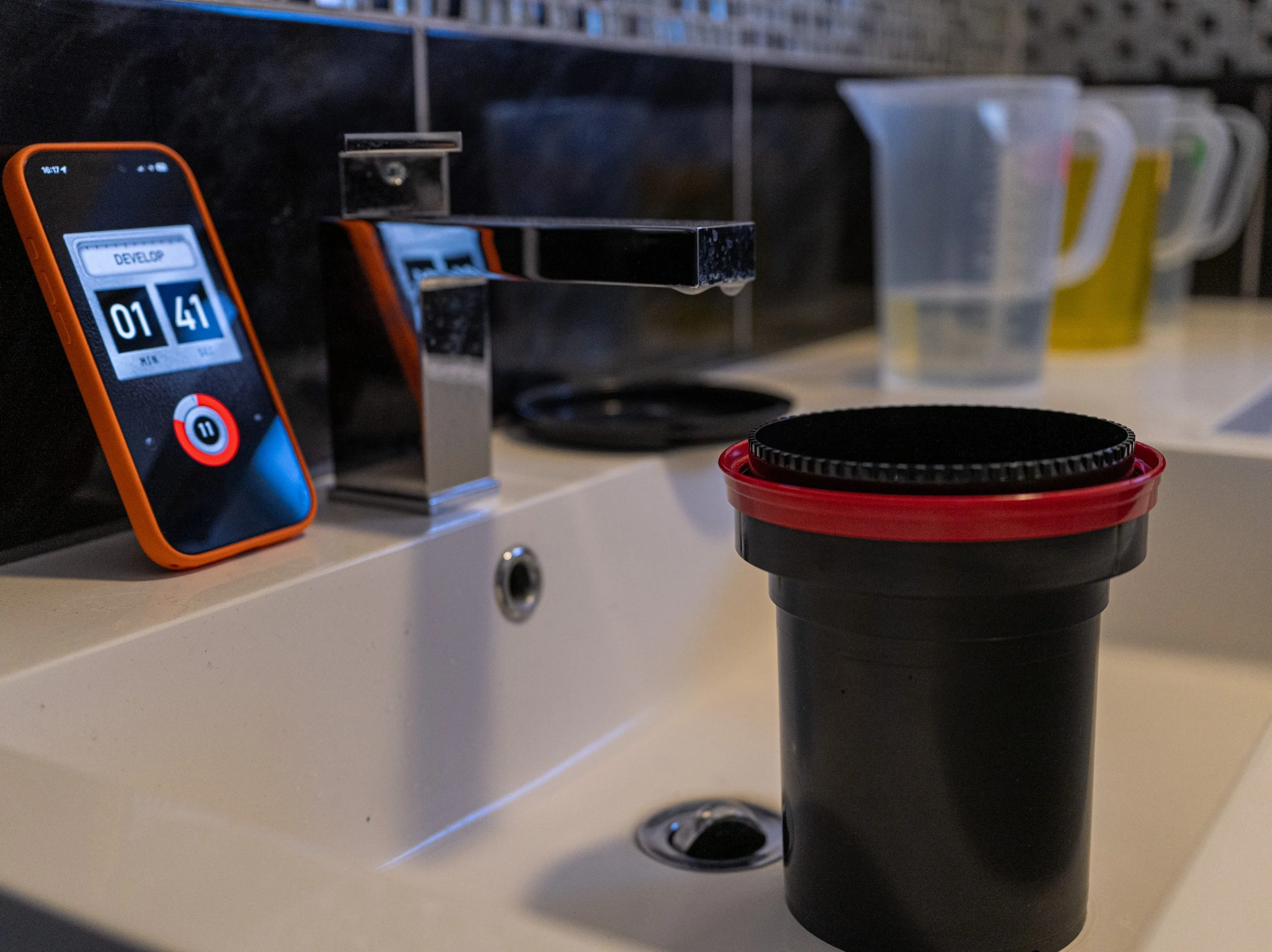 Film loaded into the tank, and off we go… I used the ‘Develop’ App to time the different stages